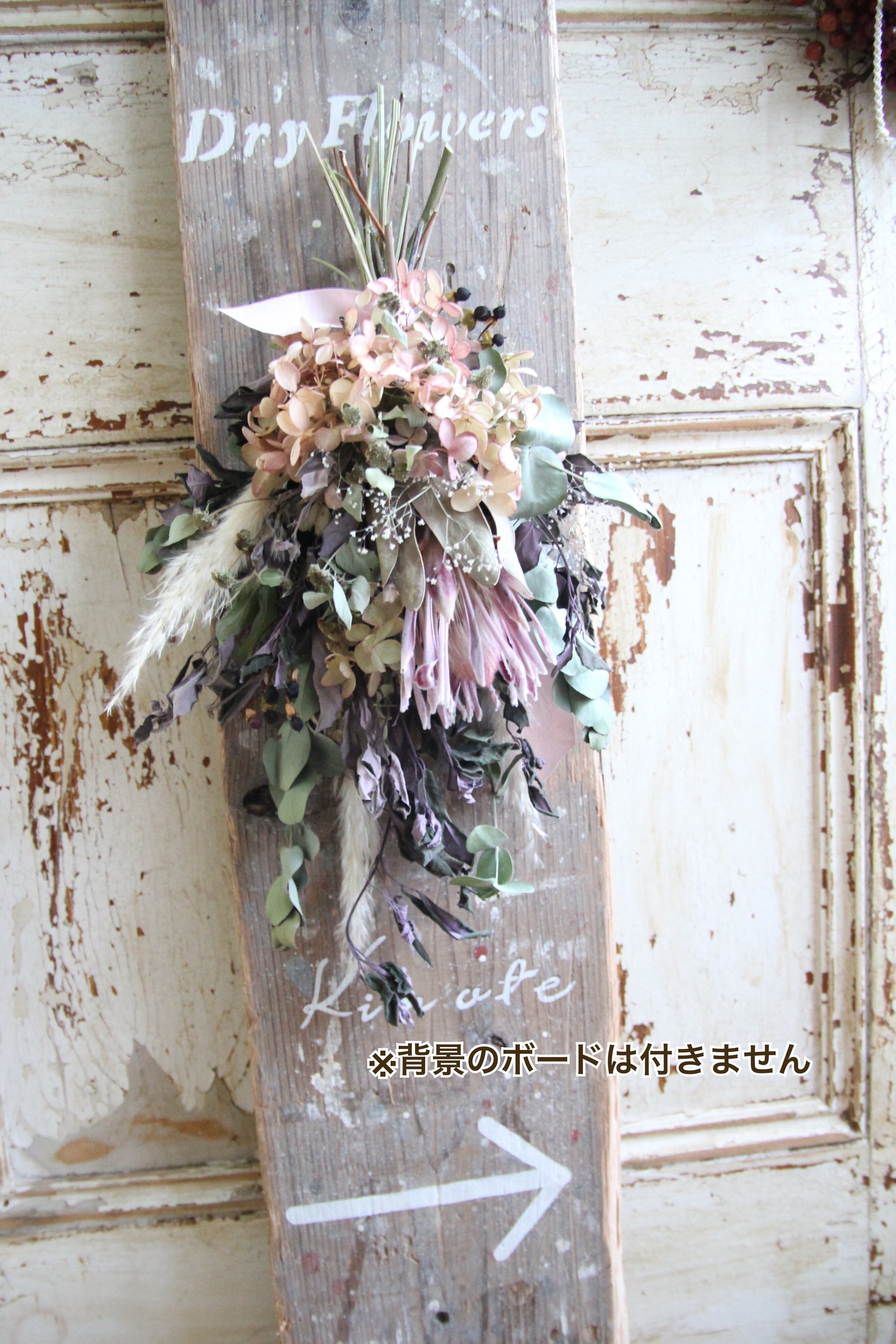 プロテアのピンク色が優しく心を癒してくれるスワッグは、お部屋のインテリアとしても素敵な一品です。手作りで一つ一つ制作されるため、贈り物にはぴったりのオリジナル感をお楽しみいただけます。